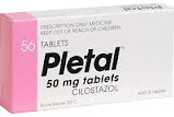 Pletal (Cilostazol) widens arteries that supply blood to the legs. Cilostazol also improves circulation by keeping platelets in the blood from sticking together and clotting.